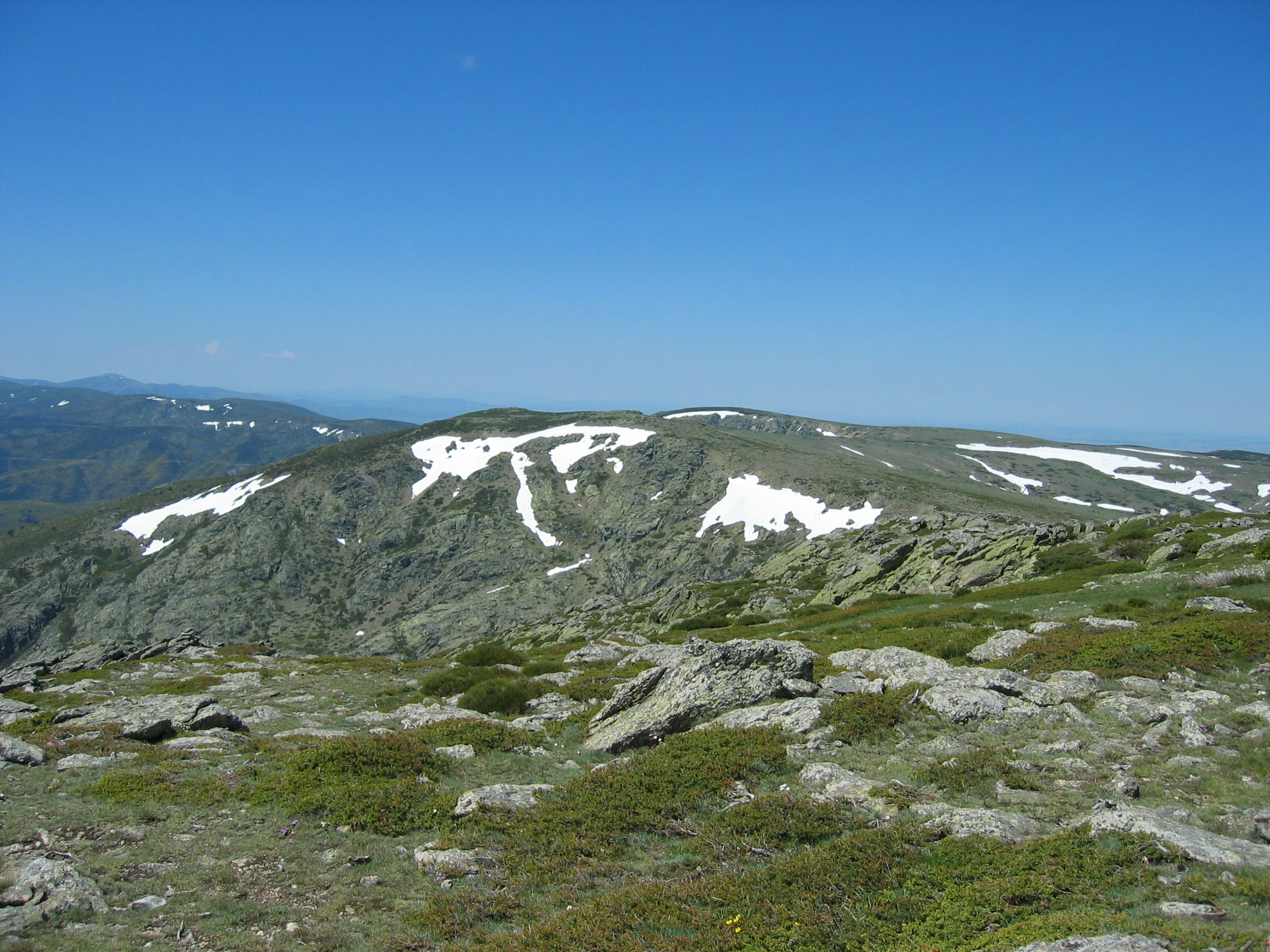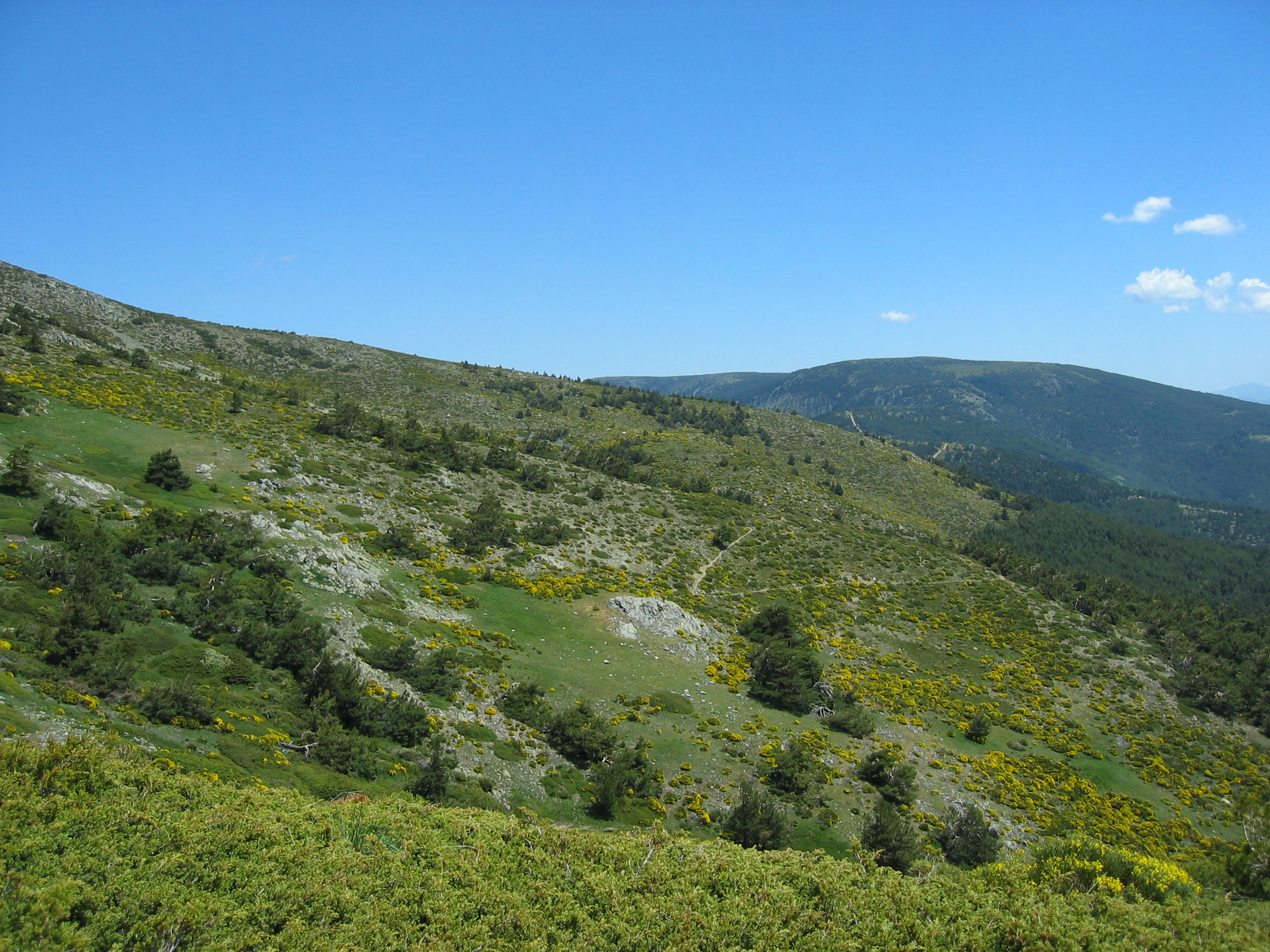 descenso desde el nevero hasta la peña del cuervo campo através, se puede ver la nieve que todavia hay