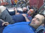 Total, que Coso, Dani y un servidor hemos continuado hasta La Granja, donde Felix, un amigo de Dani y un tío acojonante, nos ha ido recogido para ir todos juntos a comer a Navacerrada. Después de comer y con Felix y Enrique de camino a sus casas, Dani a propuesto hacer el sendero Whistler y Coso y yo nos hemos apuntado sin dudarlo. Lo mío tiene delito, porque no tenía ni idea del berenjenal en el que me iba a meter, y es que es un pedazo de trialerón como ni me imaginaba que existían, y que hemos bajado con más o menos dignidad –Dani con nota- hasta que me he dado un hostión bastante interesante de boca contra un pedrulo. Saldo: un dedo torcido, el labio partido, un arrastrón en la mejilla y una rodilla “pa talleres”. Aún con todo ha merecido la pena.