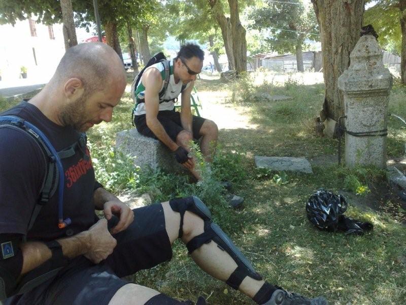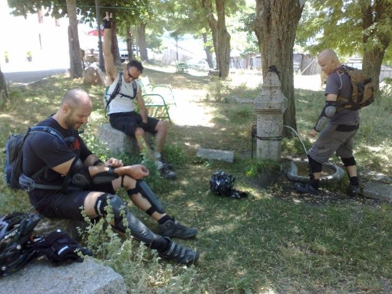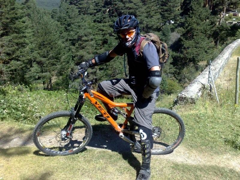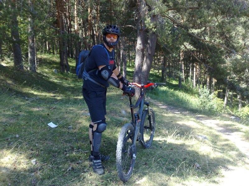 Total, que Coso, Dani y un servidor hemos continuado hasta La Granja, donde Felix, un amigo de Dani y un tío acojonante, nos ha ido recogido para ir todos juntos a comer a Navacerrada. Después de comer y con Felix y Enrique de camino a sus casas, Dani a propuesto hacer el sendero Whistler y Coso y yo nos hemos apuntado sin dudarlo. Lo mío tiene delito, porque no tenía ni idea del berenjenal en el que me iba a meter, y es que es un pedazo de trialerón como ni me imaginaba que existían, y que hemos bajado con más o menos dignidad –Dani con nota- hasta que me he dado un hostión bastante interesante de boca contra un pedrulo. Saldo: un dedo torcido, el labio partido, un arrastrón en la mejilla y una rodilla “pa talleres”. Aún con todo ha merecido la pena.
