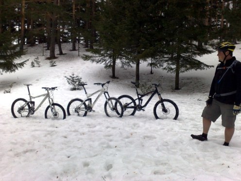 Una vez recorridos los 11,5Km de subida en la que -como es tradicional- Nacho y Ángel tuvieron que ir tirando de mi. Una vez arriba descubrimos un par de cosas importantes, la primera es que nos podíamos haber ahorrado un par de kilómetros de subida, porque en lo alto del puerto había tanta nieve que avanzar se hacía imposible.