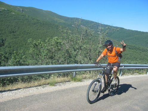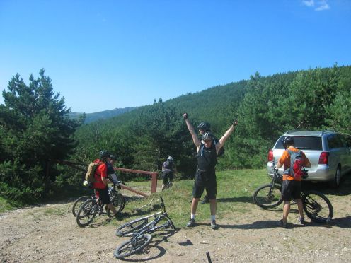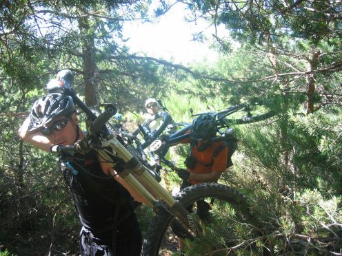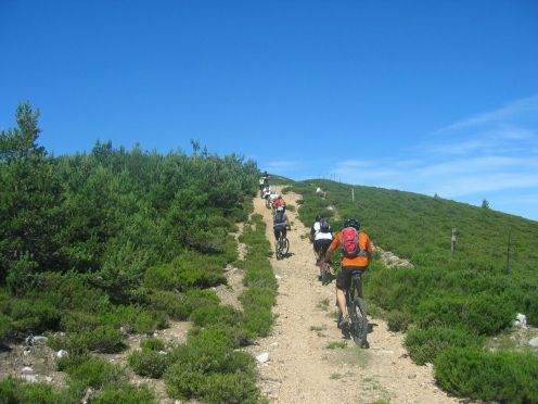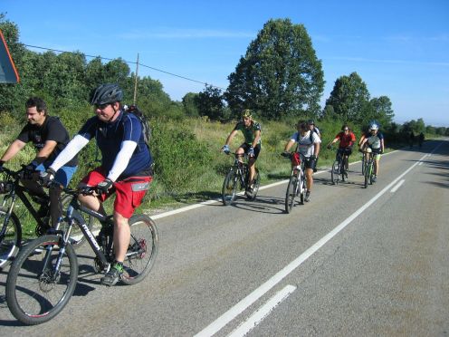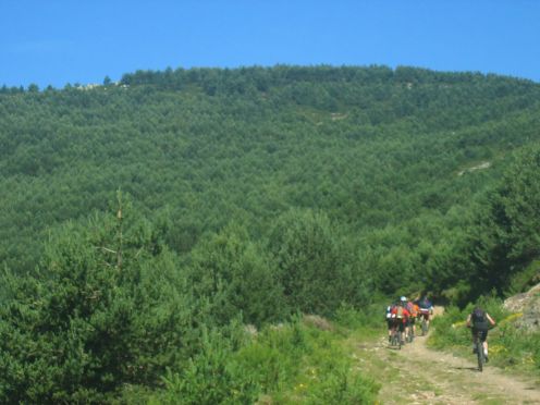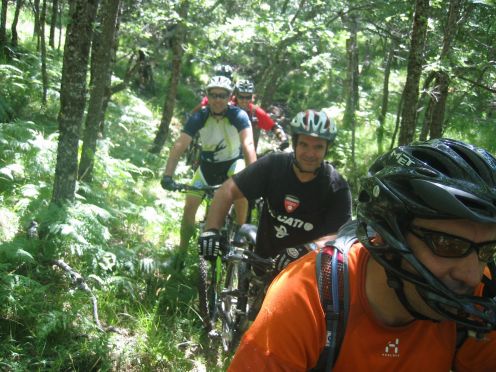 tras ponernos las protecciones, el primer descenso enlazando con los helechos hasta el pinarejo, para comenzar a subir por carretera hasta la pinilla.