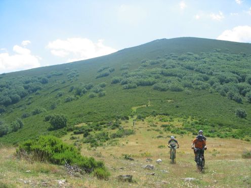 aqui comenzamos a pistear varios kms con sube y baja, bastantes relajados, para no pasarnos de un sendero muy, muy cerrado que nos obliga patear hasta llegar a la cuerda de la montaña en el prado llano