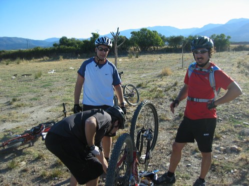 antes de llegar a La Granja dimos la primera clase de mecánica práctica en ruta, tuvimos que quitar un par de eslavones de la cadena de Pablo