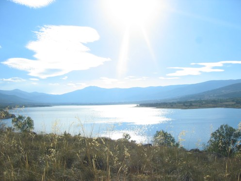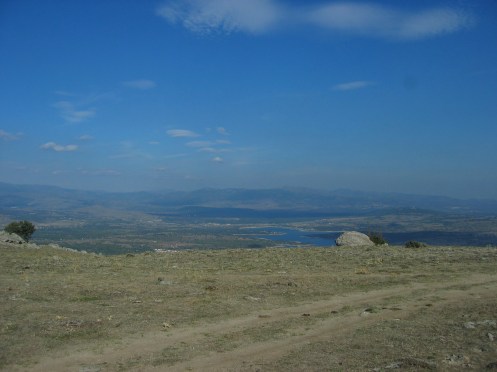 tras el descenso divertido por la trialera de las zetas, llegamos a Gargantilla que sin pisar asfalto llegamos al camino paralelo a la carretera y llegamos al pantano justo en la presa de Lozoya.