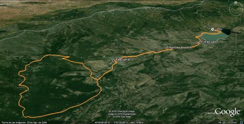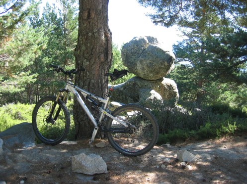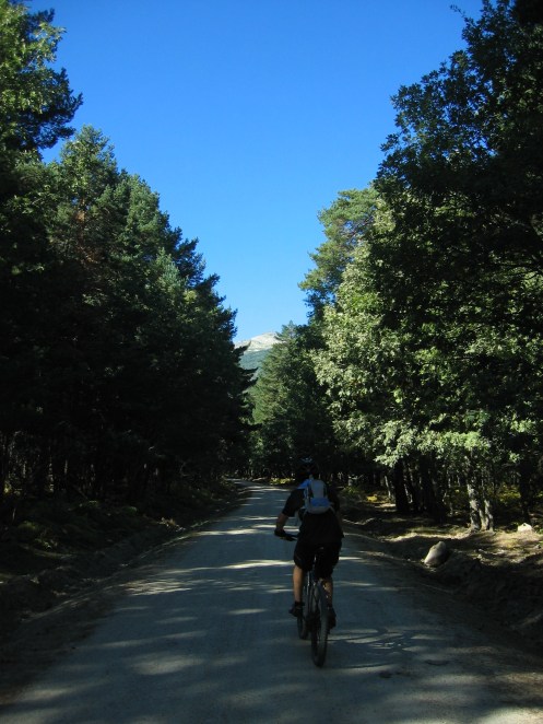 tras la primera noche de fiestas de Lozoya, Javi y un servidor, decimos anular la subida al puerto de Navafria y decidimos salir a rodar un poco, pero como siempre nos calentamos y cuando llegamos a Rascafría por la pista del pantano, decicimos subir al carro del diablo, porque el Lanza no conocia la bajada por el sendero PR-10.