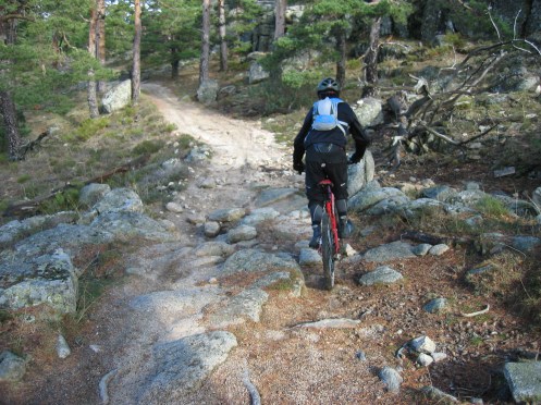 disfrutando como niños en el sendero de los vascos sin ningún percance, hasta llegar al pueblo del Escorial y de aqui al parkin, donde damos la correspondiente duchita a las bicis y nos ponemos camino a casita.