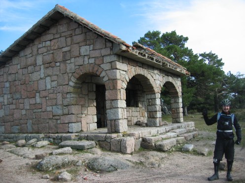 tras comer un poco junto a la cumbre de Abantos, nos ponemos las protecciones y seguimos el GR-10 hasta llegar al refugio, no sin antes, haber difrutado del senderito y de perder un tornillo de las calas de javi.