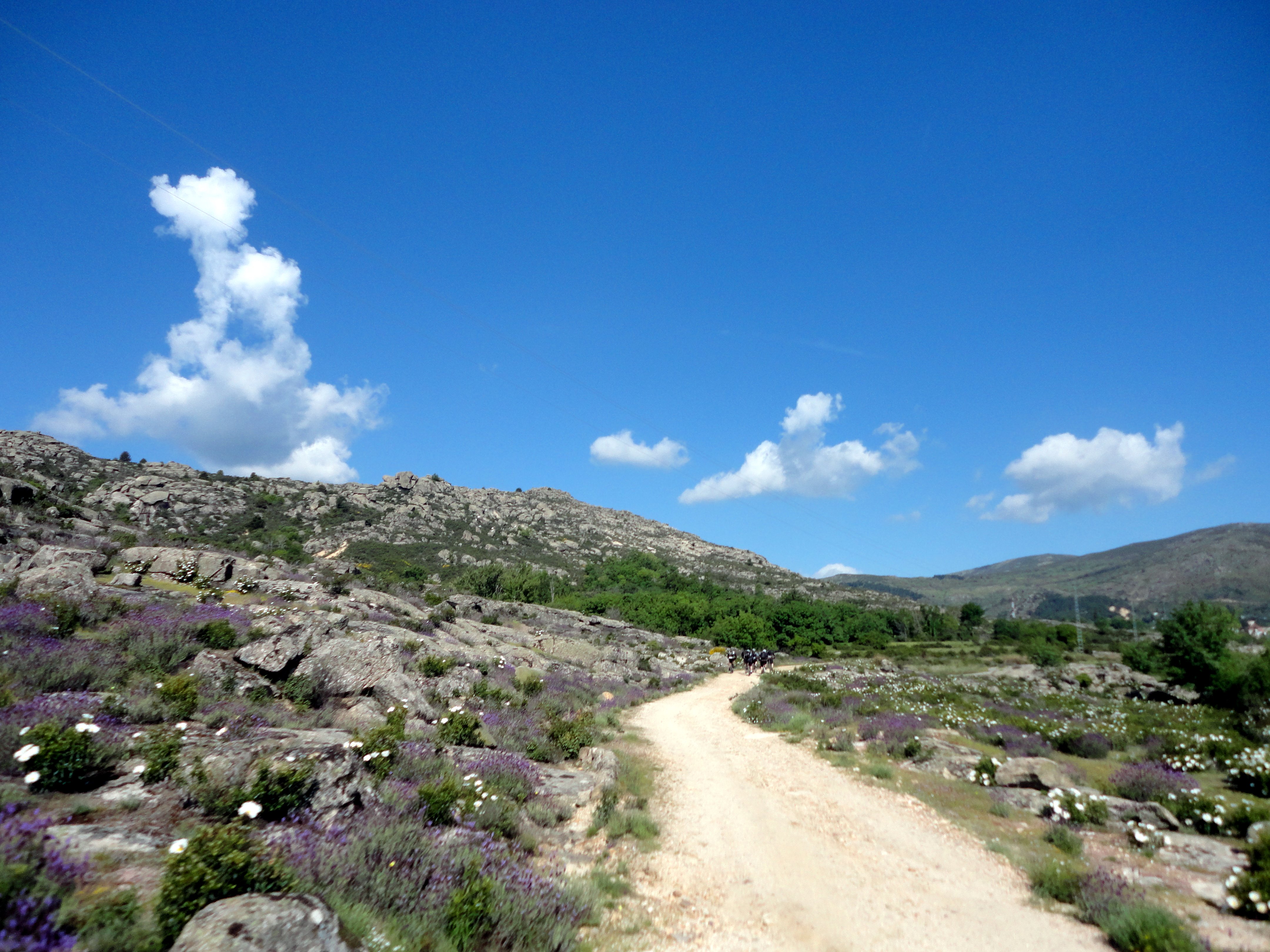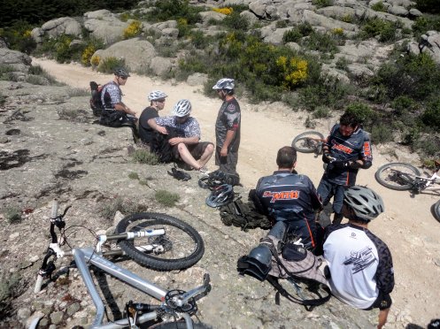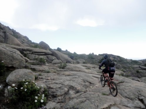 Tras bajar como locos, cruzamos Bustarviejo y nos encaminamos hacia Valdemanco por la pista, dejando a la izquierda esta bonita piedra, donde encontramos un grupo escalando para despues de un descansito y poner las portecciones comenzar con las trialeras…tras equivocarnos de desvio, logramos localizar la bajada del Convento, que no tiene desperdicio, al principio un mucha tierra seca y despues un poquito de agua y barro… tiene de todo… jeje
