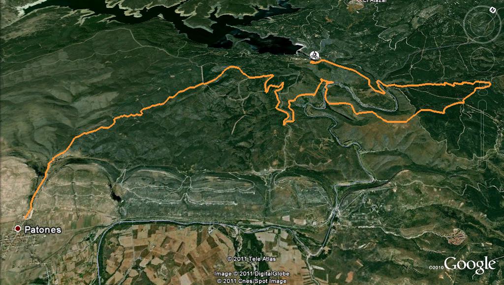 la ruta consistía en la clásica de Patones, pero para evitar el excesivo barro de la primera bajada cercana al pontón de la Oliva, comenzariamos desde el poblado abandonado de Patones, situado por encima del atazar y para empezar bajando.