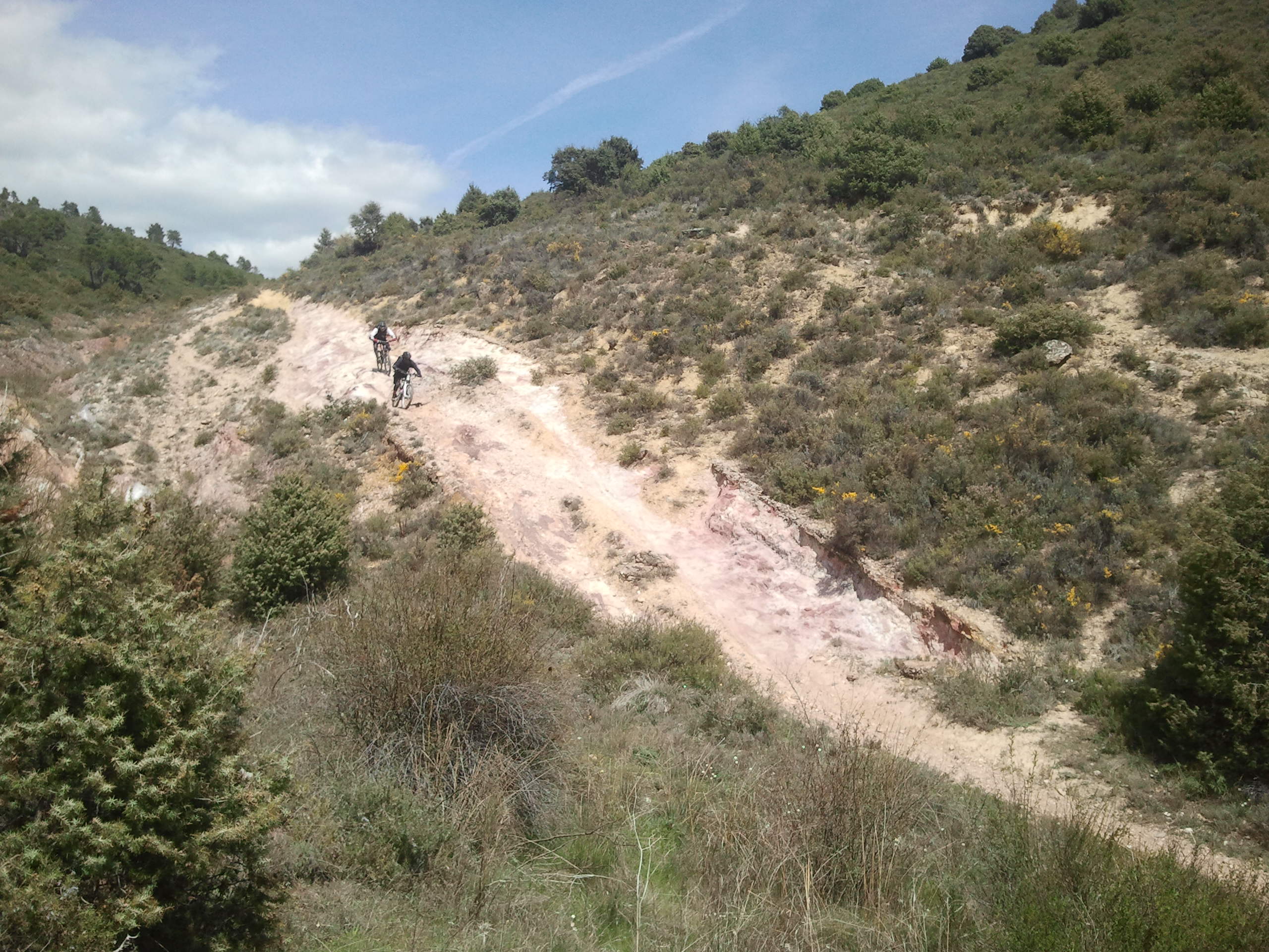 luego bajadita por sendero rápido con alguna piedra y subidote por pista y sendero, para enlazar con una bajada muy rápida por sendero con pizarra suelta.