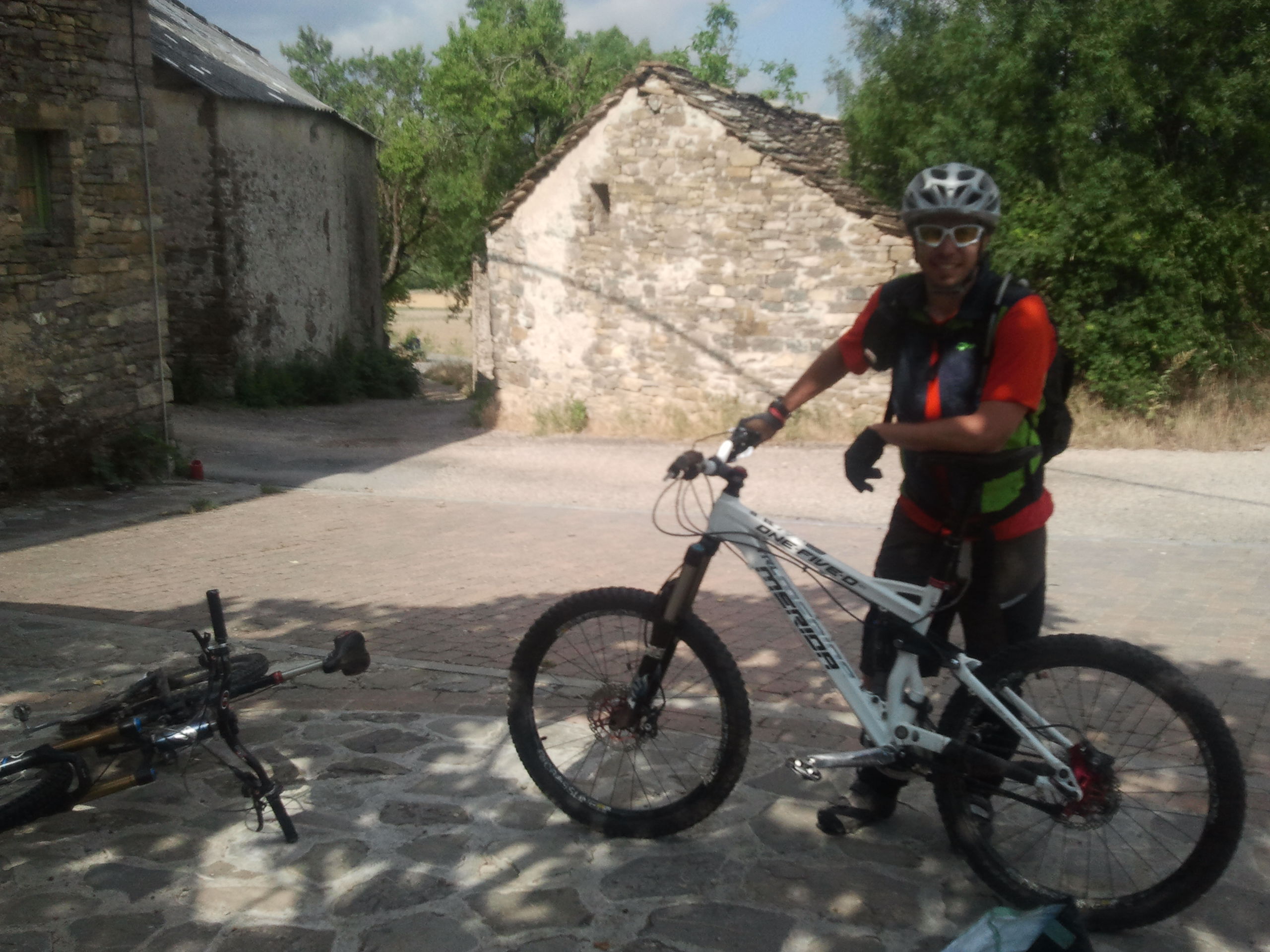 Se puede diferenciar dos tramos bien diferenciados, la primera es un pisteo de unos 15 km de subida dede el pueblo de Ladarre, que al principio es muy liviana y según vas subiendo aparecen alguna rampa exigente, pero nada de otro mundo. Tras el subidote para coger altura tranquilamente , nos preparamos para el primer decenso. Comenzamos con una bajada por camino carretero muy trialero y rápido hasta el primer pueblo perdido Aniete, tras ver un poco el pueblo, seguimos bajando tras llanear un poco… el gran sendero, en parte muy rápido, en parte muy técnico y en todas muy divertido, hasta Bergusa.