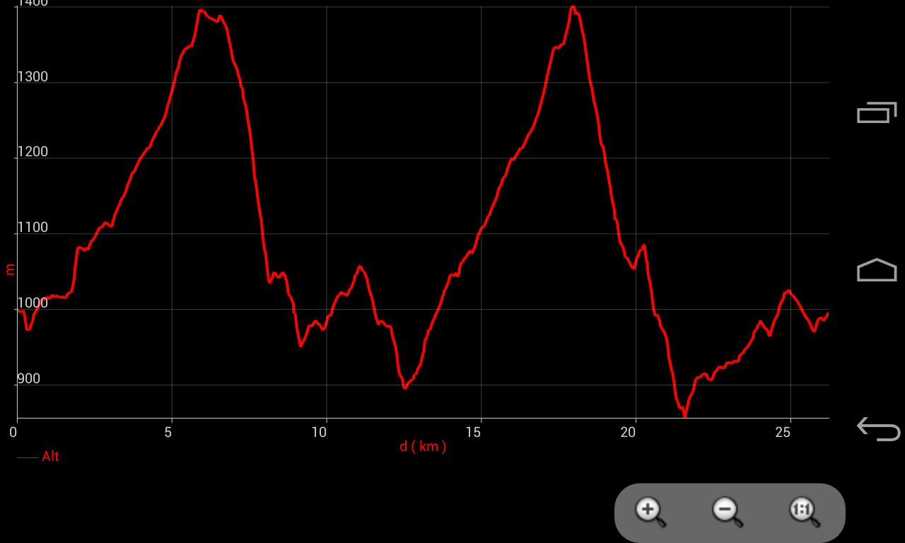 la ruta es muy sencilla, dos subidas y dos bajadotes… y para que sea más sencilla se sube dos veces al mismo sitio, la Cabeza Anton a 1396 m de altura. Aqui podeis ver el perfil