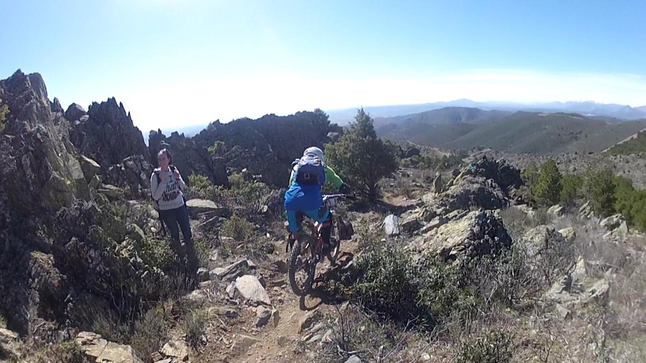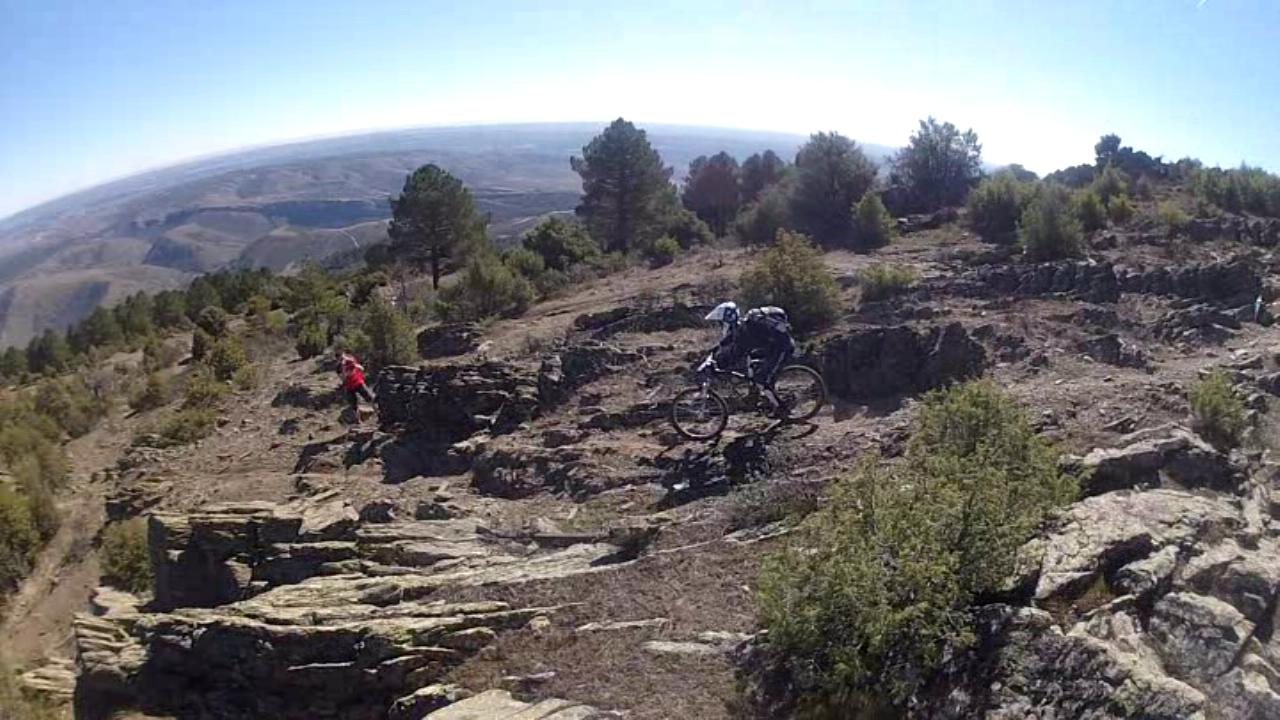 Una vez superada, hay que dirigirse hacia el geodésico por la ya conocida pista del año pasado, que nuevamente al llegar al cortafuegos , hay que ponerse la bici al hombro por los riscos justo antes de llegar a la cumbre.