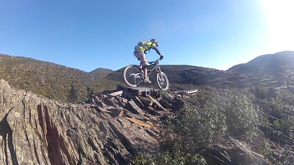 nos encontramos con este cortado de unos tres metros, preparado con recepcion en unos pales y una zona con buena pendiente un salto que se hace ha gran velocidad con aterrizaje en una curva entre pinos