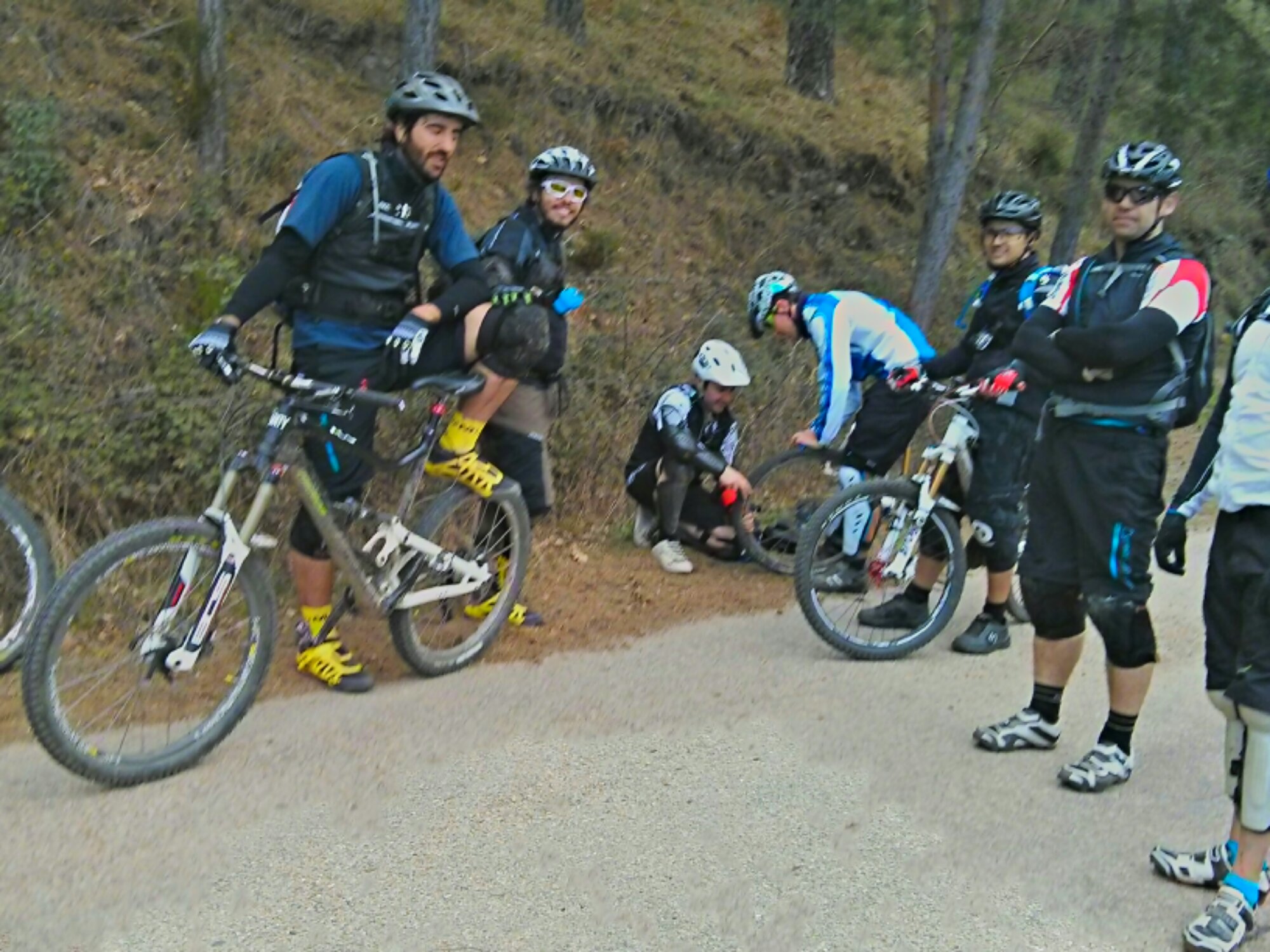 En la carrera del embalse toco reparar a Nacho un reventón y a seguir subiendo.