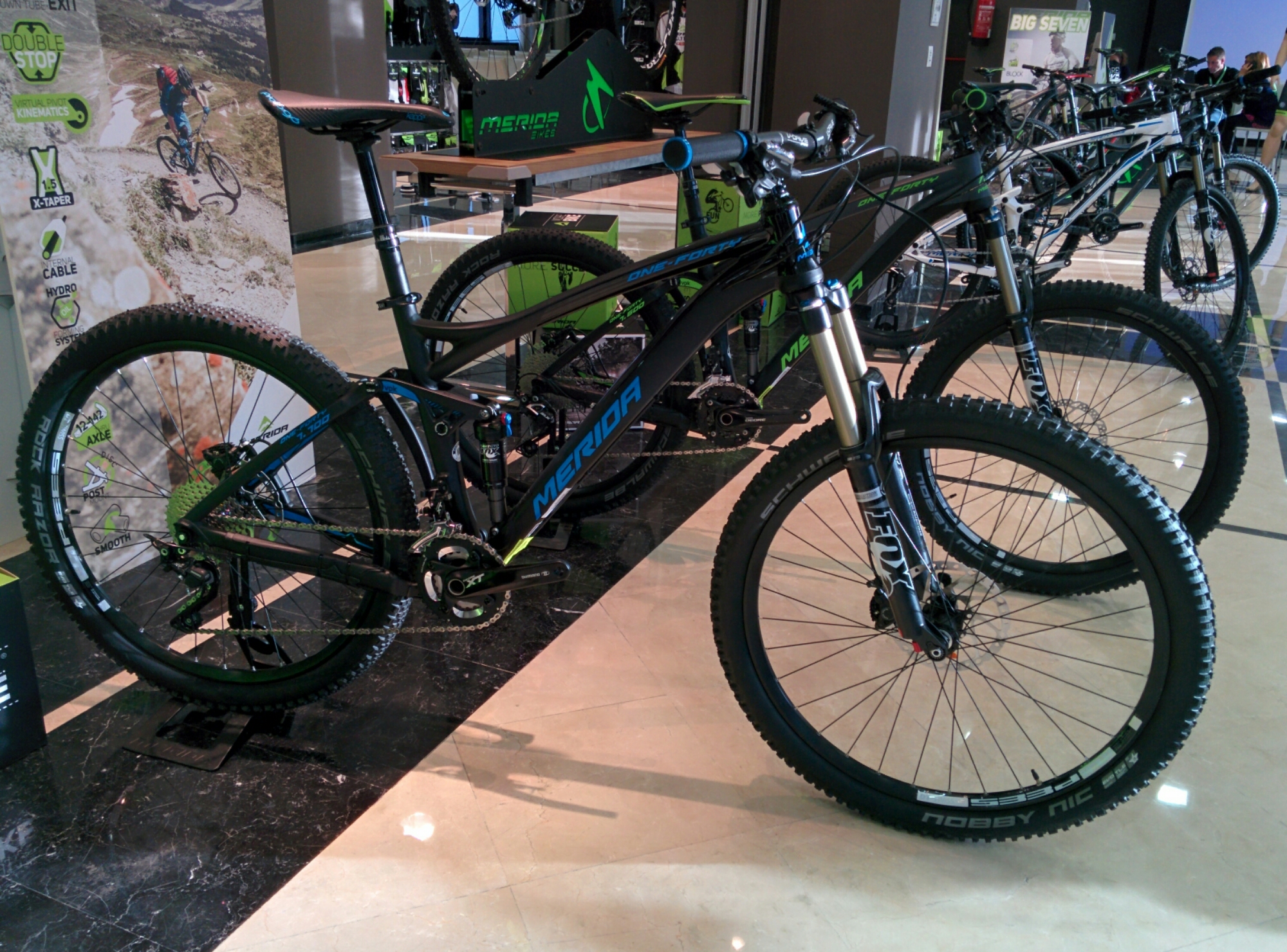 Para el allmountain siguen apostando por la mítica One Forty con ruedas de 27.5″ que el año pasado os presente un test en este blog de mis propias manos. Sistema de suspensión con VPK, que es la plataforma virtual bien testada durante los últimos años por Merida.