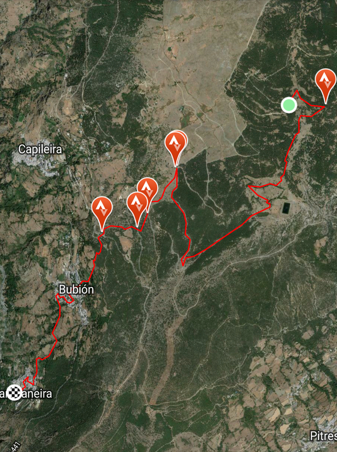 Y la última del viernes… ya atardeciendo… esta salimos directamente desde Piedra Blanca y cogemos una variante hasta Bubion