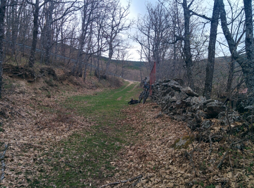 Comienzo subiendo por la carretera de puerto de Navafria y al llegar a la curva de la Paloma, cojo la pista que me llevara al primer sendero de bajada.