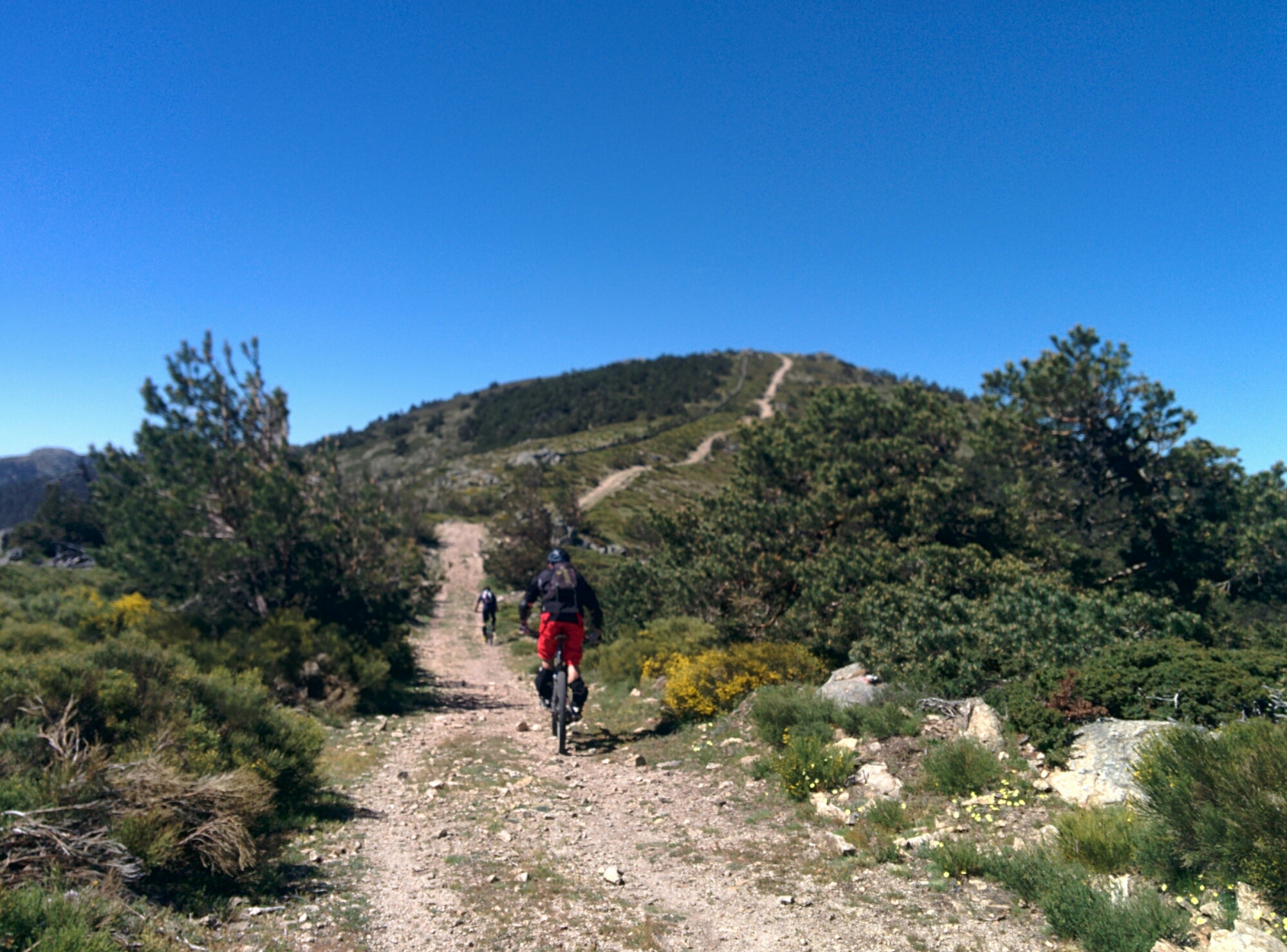 Llegamos al collado donde enlazamos con la pista… Y con la bajada del segundo pilón que nos dejara en la carretera de las dehesas…