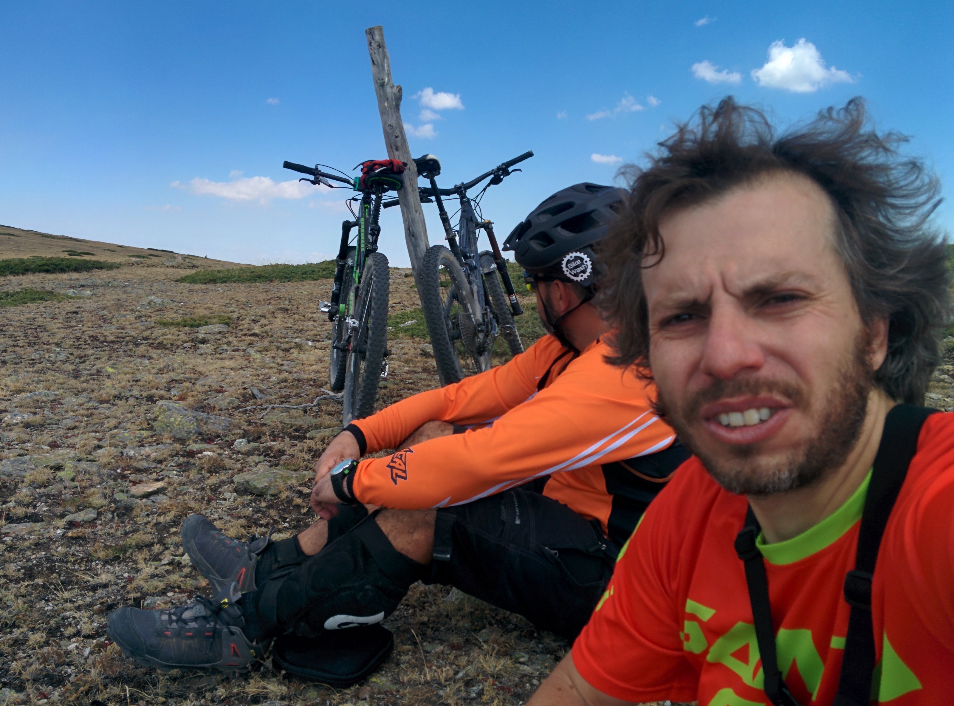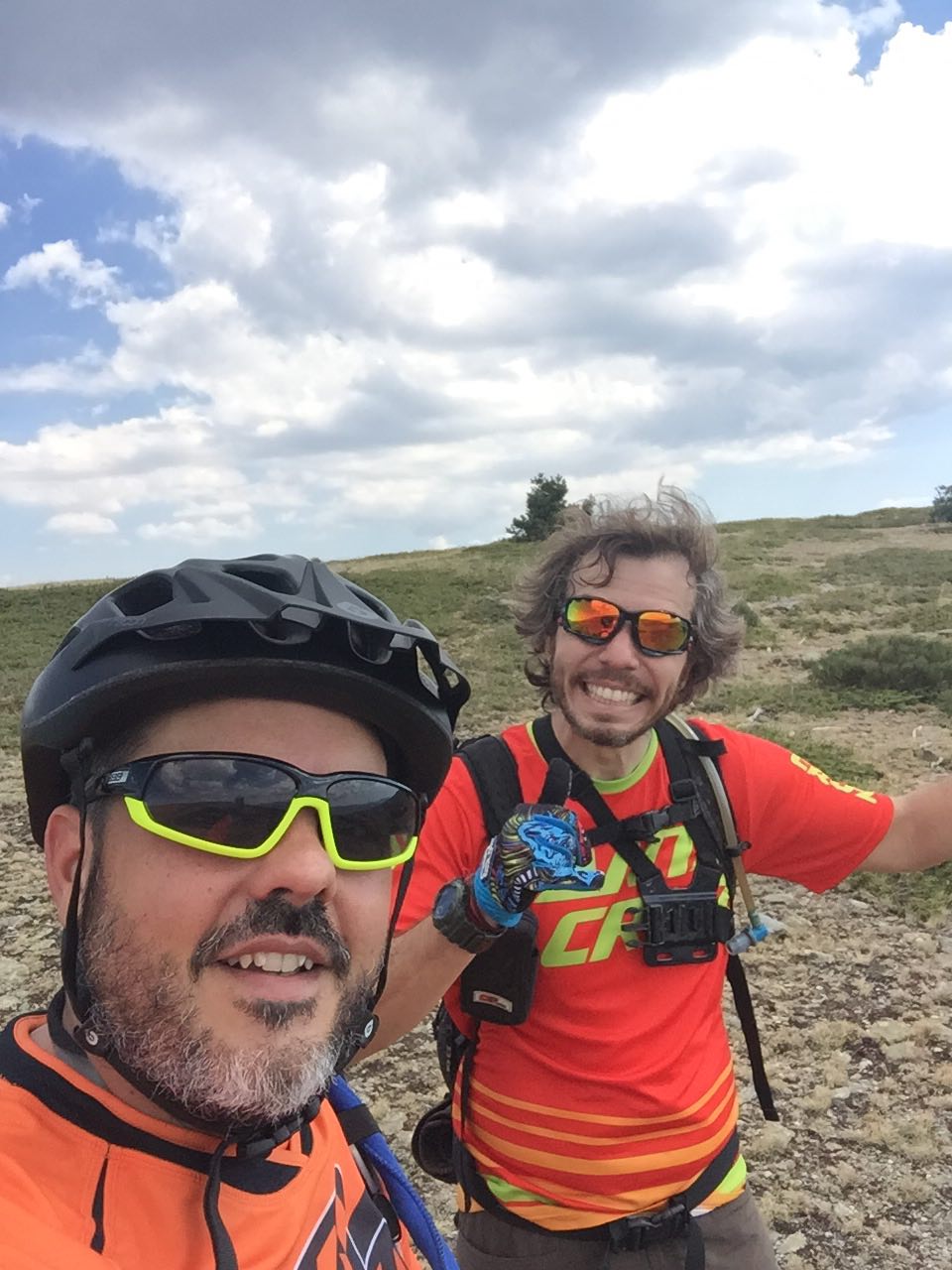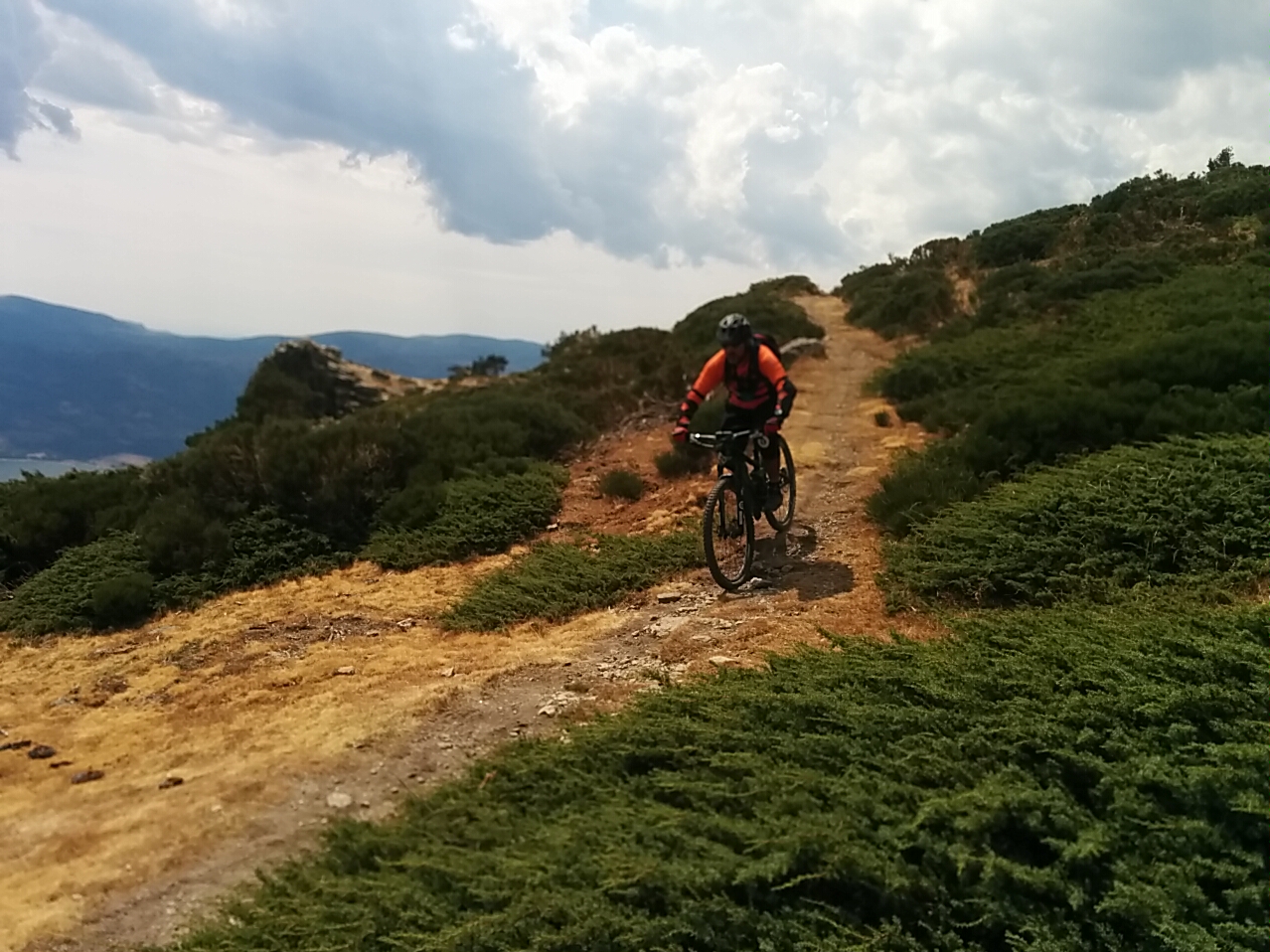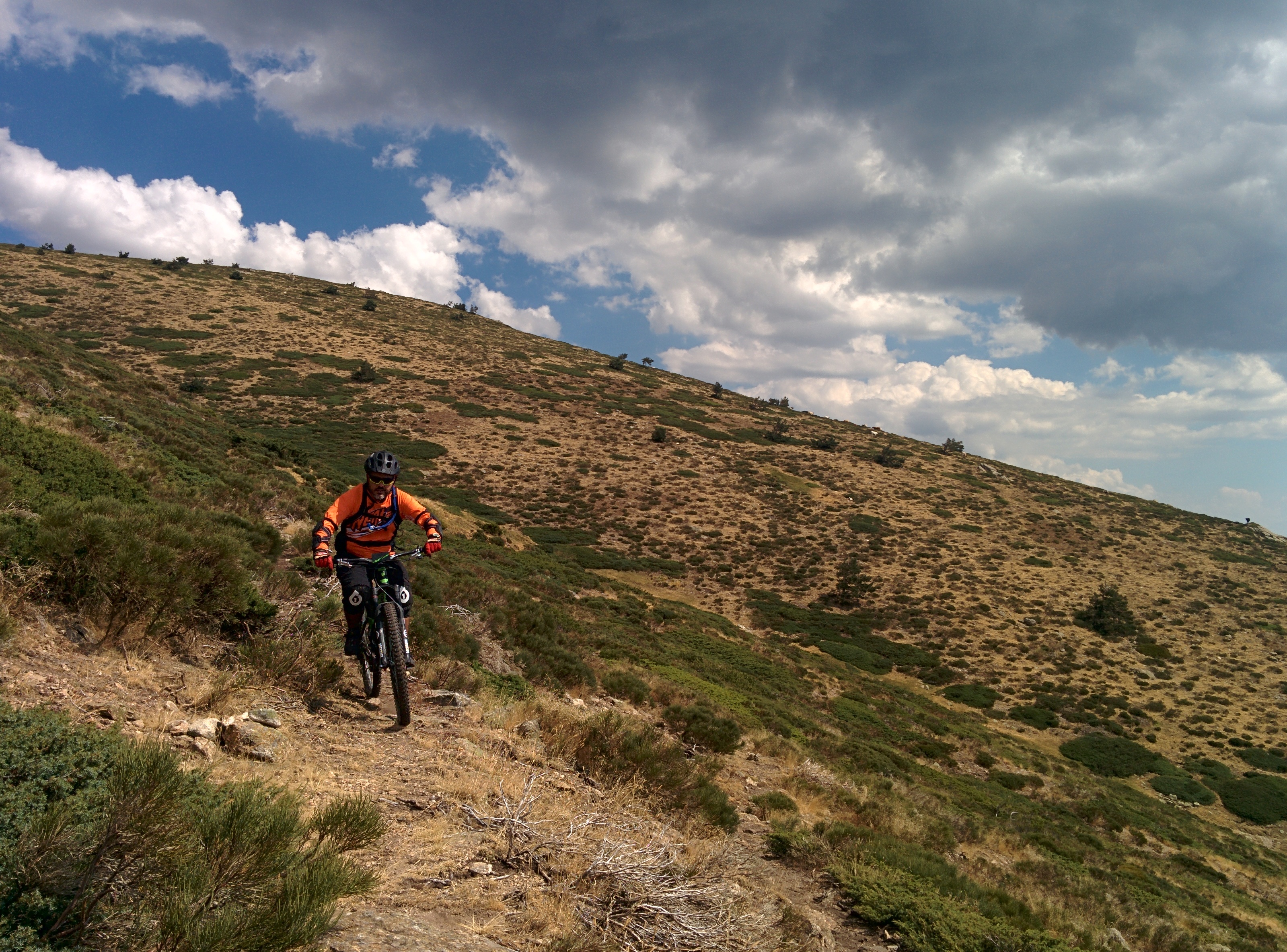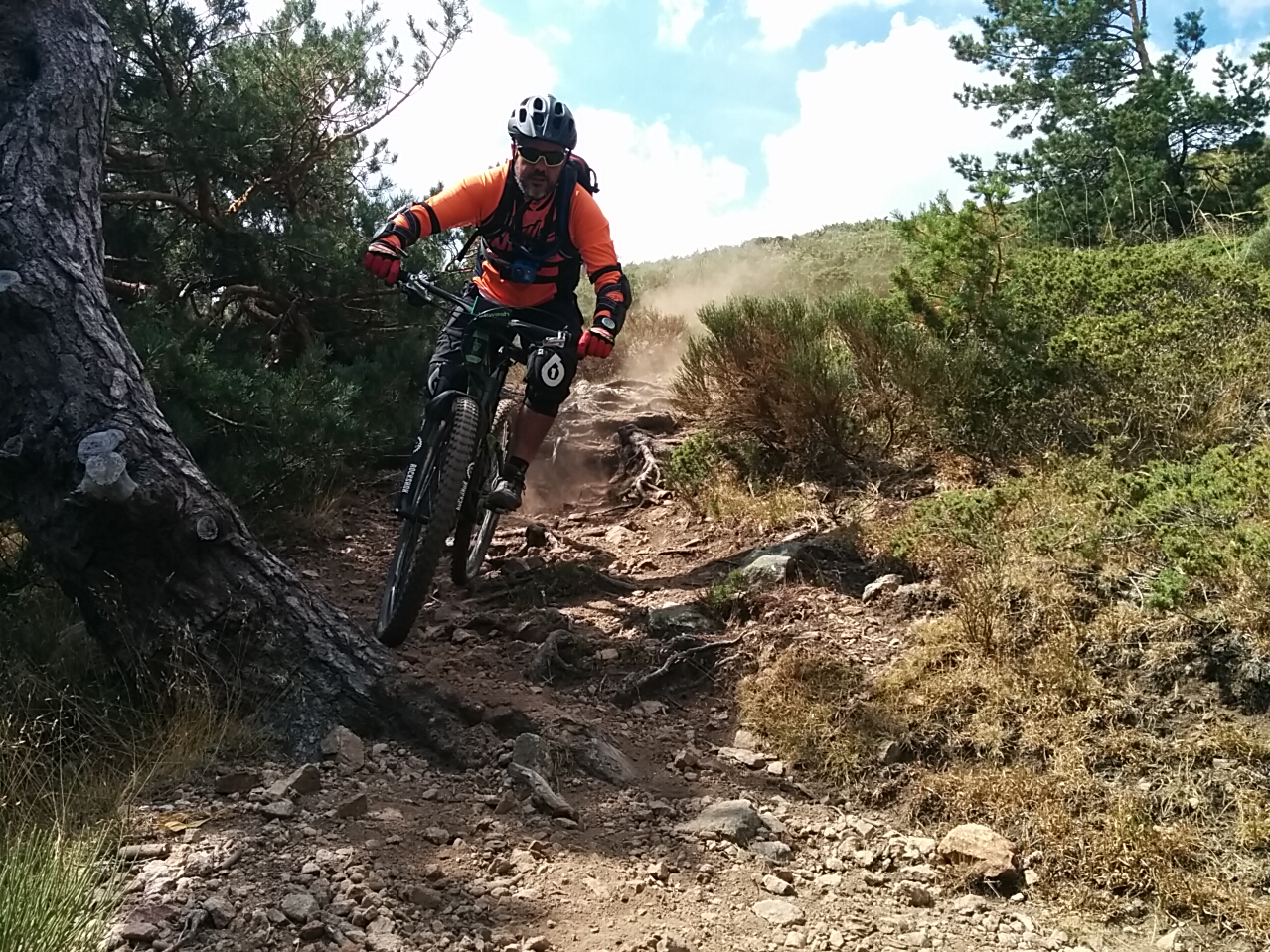 Otro merecido descanso y nos ponemos las protecciones para comenzar la bajada, la primera parte por sendero trialera poco dibujado y un poco difícil de encontrar el empiece, luego se hace cada vez más divertido y rápido hasta la Peña del Cuervo.